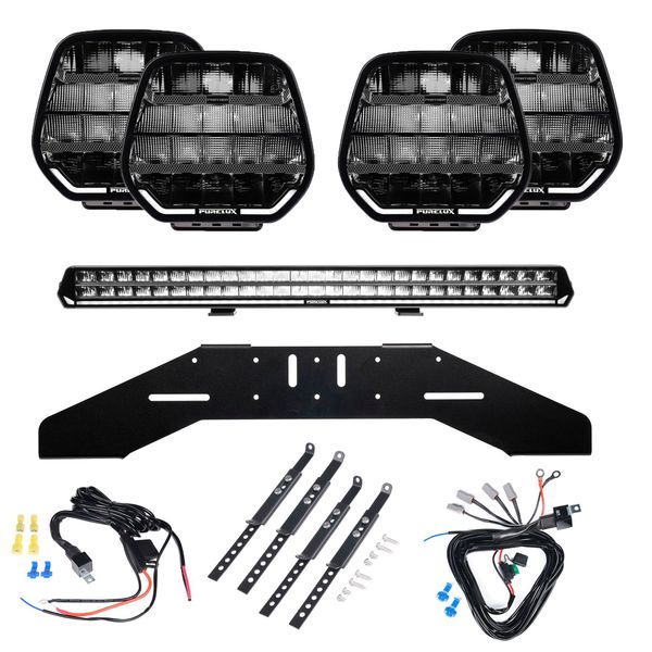 Todella tehokas neljästä pyöreästä 9" lisävalosta sekä yhdestä 80 cm leveästä lisävalopaneelista koostuva täydellinen lisävalosetti, joka on suunniteltu vaativaan käyttöön ja haastaviin olosuhteisiin. Mitattu yhteisvaloteho yli 71 000 lumenia, kantama n. 1500 m @ 1 lux. EI TIELIIKENNEHYVÄKSYTTY!