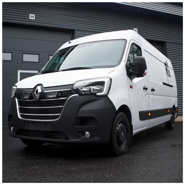 Täydellinen, kaiken tarvittavan sisältävä lisävalopaketti vuoden 2020 Renault Master -pakettiauton etusäleikköön. Valaisimina toimii 2 kpl Lazer Triple-R Elite GEN2:sta.