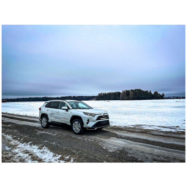 Täydellinen, kaiken tarvittavan sisältävä lisävalopaketti vuoden 2020 Toyota RAV4 Plug-In Hybrid -henkilöauton etusäleikköön. Valaisimena toimii Lazer Linear 18 Elite.