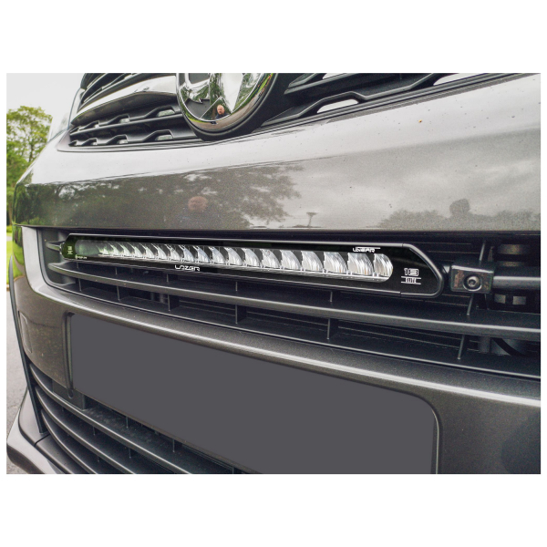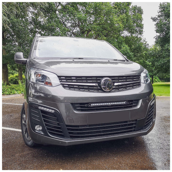 Täydellinen, kaiken tarvittavan sisältävä lisävalopaketti vuoden 2019 Vauxhall / Opel Vivaro -pakettiauton etusäleikköön. Valaisimena toimii Lazer Linear 18 Elite.