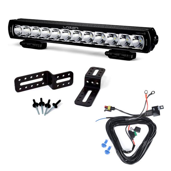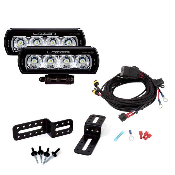 Paketin mukana tulee valintasi mukaan joko kaksi Lazer ST4 Evolution -lisävalopaneelia tai yksi Lazer ST12 Evolution -lisävalopaneeli, kaikki asennukseen tarvittavat kiinnikkeet ja ruuvit, valmis johtosarja sekä asennus- ja kytkentäohjeet. Etusäleikköön tulevat kiinnikkeet ovat valmistettu erittäin kestävästä ASA-materiaalista (Acrylonitrile Styrene Acrylate), joka on erityisesti tunnettu sen lujuudesta sekä loistavasta kestävyydestä UV-säteilyä vastaan. Kiinnikkeet ovat myös täysin sään- ja kemikaalinkestäviä, mikä varmistaa asennuksen siistinä pysymisen vuosi toisensa jälkeen.