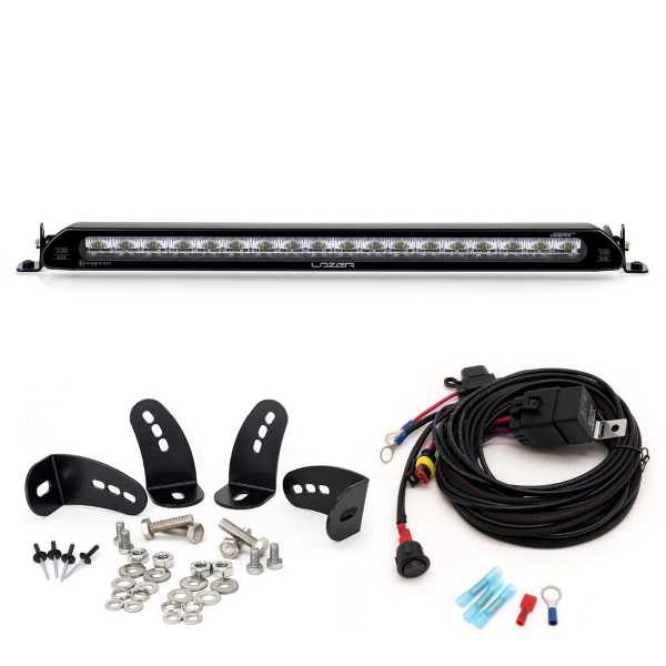 Paketin mukana tulee Lazer Linear 18 Elite -lisävalopaneeli, kaikki asennukseen tarvittavat kiinnikkeet ja ruuvit, valmis johtosarja sekä asennus- ja kytkentäohjeet. Etusäleikköön tulevat kiinnikkeet ovat valmistettu erittäin kestävästä ASA-materiaalista (Acrylonitrile Styrene Acrylate), joka on erityisesti tunnettu sen lujuudesta sekä loistavasta kestävyydestä UV-säteilyä vastaan. Kiinnikkeet ovat myös täysin sään- ja kemikaalinkestäviä, mikä varmistaa asennuksen siistinä pysymisen vuosi toisensa jälkeen.