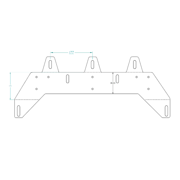 Asennusreikien välinen etäisyys on 177 mm ylemmällä rivillä ja alemmalla 620 mm.