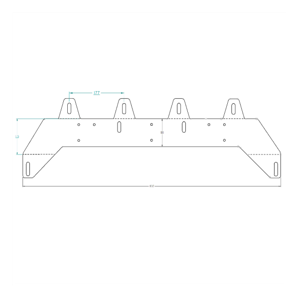Asennusreikien välinen etäisyys on 177 mm ylemmällä rivillä ja alemmalla 800 mm. Telineen kokonaisleveys on 832 mm.