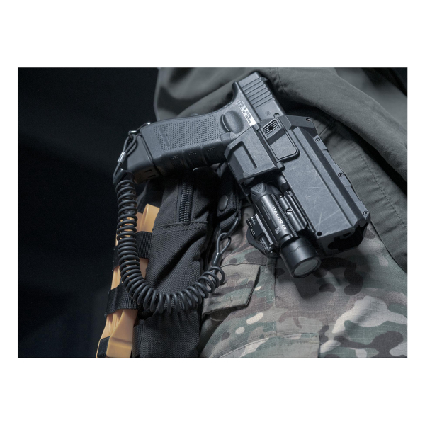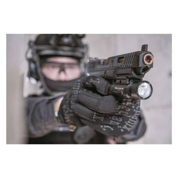 Olight Baldr IR on pistooli- ja kiväärikäyttöön suunniteltu erittäin tehokas, kompakti ja helppokäyttöinen valaisin- ja infrapuna-lasertähtäin-yhdistelmä. Baldr IR jalka on varustettu nerokkaalla pikalukolla, jonka ansiosta valaisimen kiinnitys onnistuu Picatinny-kiskoon helposti jopa yhdellä kädellä! Valaisin puristuu kiskoon suoraan kiinnityskohdasta, joka takaa hyvän lukittuvuuden äärimmäisissä olosuhteissa. Asennus ei vaadi työkaluja. Napin painalluksella lampusta saadaan sokaiseva 1350 lumenen teho, joko tasaisesti palavana tai strobolla. Lisäksi Baldr IR:stä löytyy paljaalle silmälle näkymätön infrapuna-lasertähtäin esim. pimeänäkölaitteiden kanssa käytettäväksi. Baldr Pro-mallista poiketen IR:ssä valoa ja laseria ei saada palamaan yhtä aikaisesti, vaan käyttäjän tulee valita joko näkyvä valo, tai silmälle näkymätön IR-laser. Lasertähtäin saadaan kohdistettua siinä olevien säätöruuvien ansiosta halutulle ampumamatkalle. Valaisin soveltuu niin viranomais-, kuin harrastuskäyttöönkin loistavasti sekä pistoolin, että pidemmän aseen kanssa toimintaan.