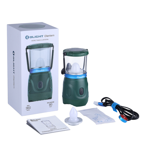 Olight Olantern on erittäin tyylikäs ja ja kirkas LED-lyhty esimerkiksi mökille, retkille, vaelluksille tai vaikka lapsille leikkiin. Pienikokoinen (136 x 66 mm), mutta tehokas lyhty riittää valaisemaan mukavasti esimerkiksi teltan, saunan tai vaikka kuistin. Lyhty valaisee täydet 360° ympäriinsä, ja 360 lm maksimivaloteho riittää erittäin moneen käyttöön. Lyhty toimitetaan kahdella erilaisella valaisinosalla: toisesta löytyy 3 tasaisesti palavaa tehotilaa, ja toisesta, liekin mallisesta löytyy kynttilän liekkiä matkiva oranssi, hieman aaltoileva valoteho, joka toimii 1 lm valotehollaan loistavasti esim. yövalona tai tunnelman luojana.
