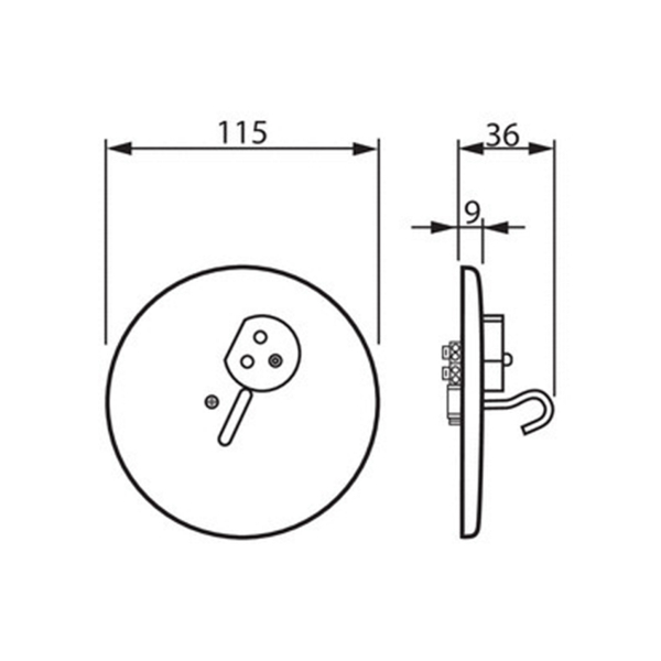 Kaksinapainen, suojamaadoituksella varustettu valaisinripustuskansi, johon voidaan ripustaa max. 15 kg painava valaisin. Jousiliittimet mahdollistavat 2.5 mm² ryhmäjohdon jatkamisen. IP20-luokitus.