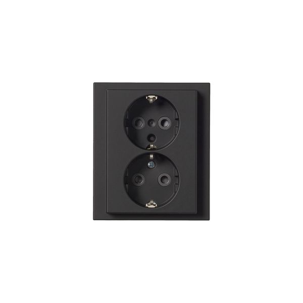 Täyspeitelevyllä varustettu Impressivo-sarjan 2-osainen uppoasennettava, maadoitettu pistorasia. Pistorasiassa on iittimet kutakin kosketinta kohden, ja niihin voidaan kytkeä max. 4 johtoa (haaroitusmahdollisuus). Liittimet on hyväksytty ML- ja MK-johtimille. IP21-luokitus.