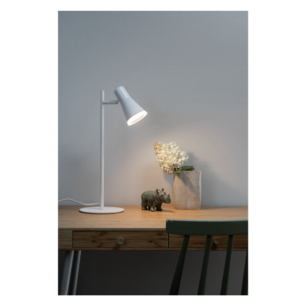 Airam Cara Desk on 320 lumenin valotehon tarjoava siro pöytävalaisin, joka tuo modernia ilmettä sisustukseen. Valaisimen kapean valokeilan voi suunnata haluttuun kohtaan kääntyvän nivelen avulla. Ilmoitettu värilämpötila 3000 kelviniä.