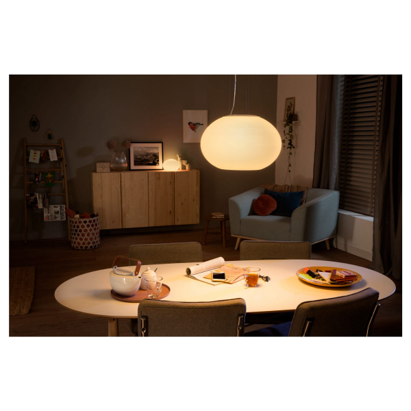 Tyylikäs, kirkasta ja värikästä valoa tuottava Philips Hue-riippuvalaisin, jota voidaan ohjata puhelimella tai Philips Hue Bridgen välityksellä. Ilmoitettu valoteho 2750 lm, värilämpötila 2000-6500K. IP20-luokitus.