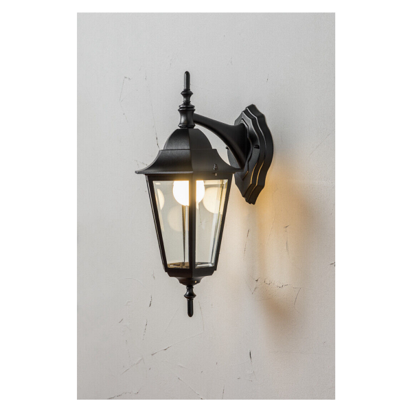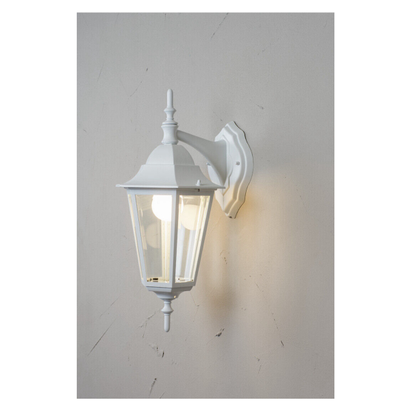Nykyaikainen versio vanhanajan lyhtyvalaisimesta, joka sopii perinteiseen pientalomiljööseen. Alaspäin suunnattu valonlähde. Saatavilla mustana tai valkoisena, polttimon kanta E27 (ei sis.).