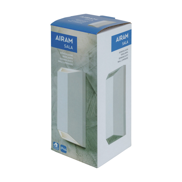 Airam Sala Double on pinta-asennettava seinävalaisin, joka valaisee kahteen suuntaan. Kompaktin kokonsa ansiosta valaisin sopii moneen paikkaan niin sisällä kuin ulkonakin, esimerkiksi valaisemaan terassia tai luomaan tunnelmaa kylpyhuoneeseen. Sala Double -valaisin toimii vaihdettavilla polttimoilla, minkä ansiosta valaisimeen voi valita mieleisen värilämpötilan, tehon sekä valokeilan. Valaisimeen tarvitaan kaksi GU10-kantaista polttimoa (ei sis.), saatavilla valkoisen tai harmaan värisenä.