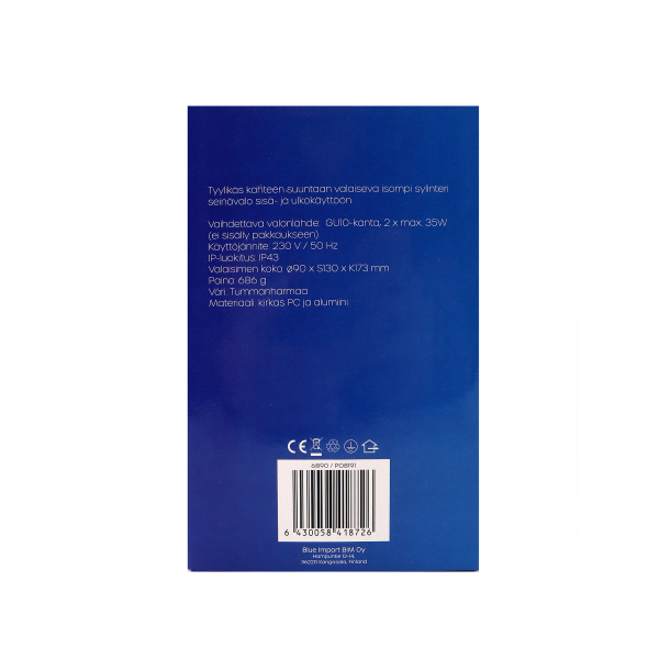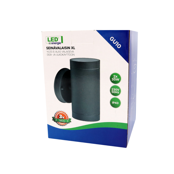 Led Energie Cylinder XL on tyylikäs kahteen suuntaan valaiseva seinävalaisin, joka sopii erinomaisesti esimerkiksi terassille tai pihan julkisivun valaisuun, mutta myös sisätiloihin. Valaisin toimii kahdella vaihdettavalla GU10-kantaisella polttimolla (ei sis.), minkä ansiosta siihen voi valita mieleisen värilämpötilan sekä tehon. Saatavilla kahta eri väriä, joko tumman tai vaalean harmaa.