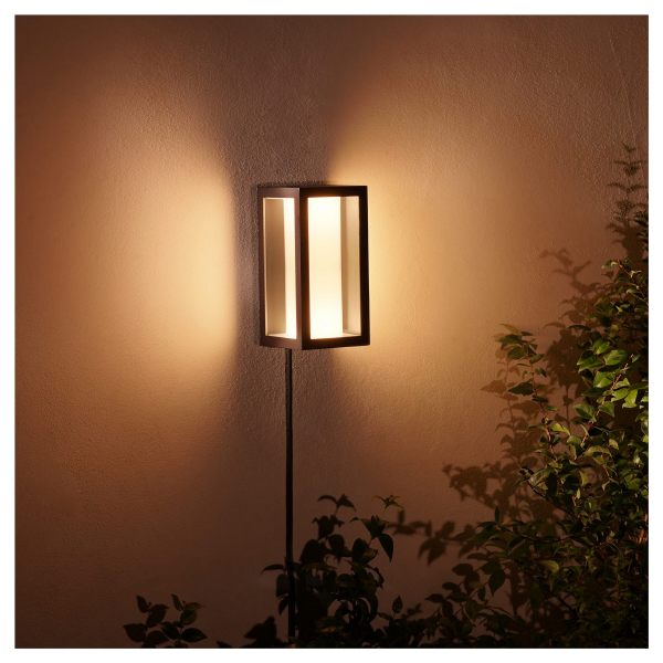 Tyylikäs kirkasta ja värikästä valoa tuottava Philips Hue-pihavalo, jota voidaan ohjata Philips Hue Bridgen välityksellä. Saatavilla virtalähteen kanssa tai ilman. Ilmoitettu valoteho 1180 lm, valon väri säädettävissä. IP44-luokitus.