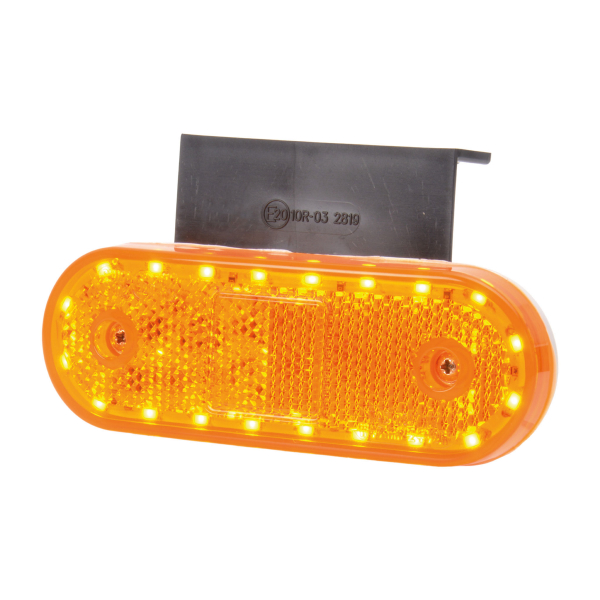 Erittäin pienikokoinen (114 x 40 mm) yhdistetty äärivalo, heijastin ja suuntavilkku. Oranssi valo.