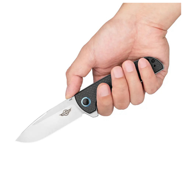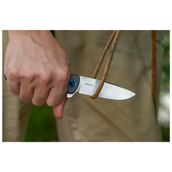 Olight Oknife Freeze 2 on laadukas ja erittäin kestävä taittoveitsi jokapäiväisiin tarpeisiin. Ruostumattomasta teräksestä valmistettu nk. Drop Point -terä toimii erinomaisesti esimerkiksi pilkkomiseen, lävistämiseen, kuorimiseen sekä leikkaamiseen. Laadukkaasti muotoillun kahvan pinta on päällystetty hiilikuidulla, ja se on kuvioitu pitävän otteen varmistamiseksi. Matalakitkaisen kuulalaakerijärjestelmän avulla toimivan terän saa vedettyä nopeasti esiin "Flipper Tabin" avulla, ja terä voidaan lukita kahvan sisällä olevan vuorauslukon avulla joko kiinni tai auki asentoon. Näin veitsi on turvallinen sekä käytössä että säilytyksessä, eikä terä pääse vahingoittamaan esimerkiksi repussa kuljetuksen aikana muita tarvikkeita. Lisäksi veitsi on varustettu taskuklipsillä, jonka avulla se voidaan kiinnittää esimerkiksi rintataskuun. Kokoontaitettuna veitsi on ainoastaan n. 10 cm mittainen, joten sitä on helppo kuljettaa mukana. Oknife Freeze 2 on erinomainen taskuveitsi niin päivittäiseen käyttöön kuin Olight-keräilijälle!