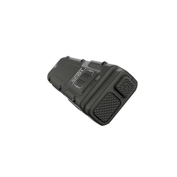 Turbo: Valaisimen ollessa päällä tai pois päältä, paina virtakytkimen viereinen painike pohjaan ja pidä painettuna aktivoidaksesi Turbo-tilan käyttöön. Turbo voidaan aktivoida missä tahansa tehotilassa sekä myös silloin, kun valaisin on sammutettu. Valaisimen indikointivalot kertovat jäljellä olevan Turbo-toiminnon käyttöajan, kun se loppuu valaisin palaa automaattisesti viimeksi käytössä olleeseen tehotilaan. Se on siis tarkoitettu vain hetkelliseen käyttöön.