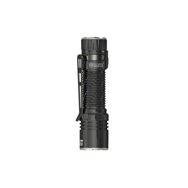 Lumin Shield: Valaisimen ollessa päällä tai pois päältä, paina peräkytkin pohjaan saakka ja pidä painettuna kytkeäksesi maksimivalotehon (5000 lm) käyttöön. Vapauta kytkin sammuttaaksesi tai palataksesi aiemmin käytössä olleeseen tehotilaan.