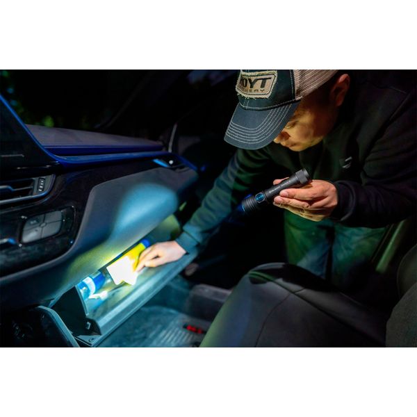 Valaisimen kompakti koko sekä ergonomisesti muotoiltu ja uritettu runko takaavat pitävän otteen myös märillä käsillä tai hanskoilla käsiteltäessä, ja suurikokoinen sivukytkin tekee käytöstä helppoa olosuhteista riippumatta. Kytkimen yhteyteen tuodut akun indikointivalot pitävät käyttäjän aina ajan tasalla jäljellä olevasta akun varauksesta, ja akun lataus voidaan suorittaa näppärästi lampun sisällä valaisimen perässä olevaa USB-C-latausporttia käyttämällä. Virtalähteenä valaisimessa toimii suorituskykyinen 5000 mAh li-ion akku, joka tarjoaa toiminta-aikaa matalimmalla Moonlight-tehotilalla jopa 15 päiväksi, ja lähityöskentelyyn sopivalla 350 lumenin teholla vajaaksi 9 tunniksi. Pitkän toiminta-ajan ansiosta Seeker 4 on erinomainen valinta myös mm. pidemmille vaelluksille, pitkiin työpäiviin tai vaikkapa hätävaralampuksi töihin, autoon tai kotiin.