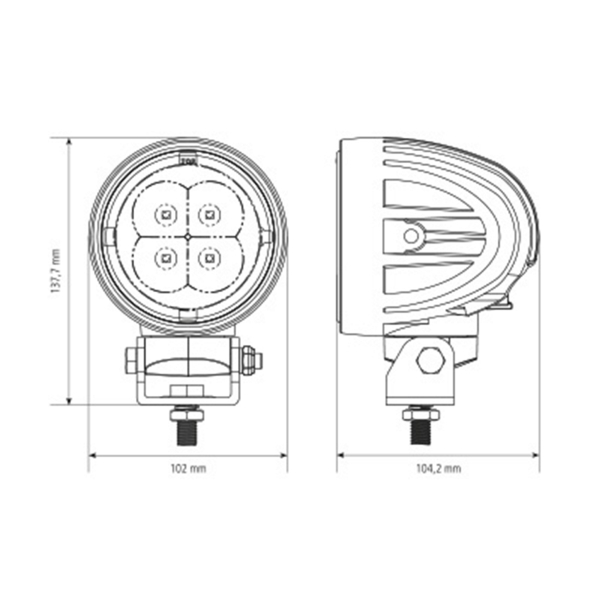Tehokas 60W työvalo laajalla valokeilalla. Sopii mm. Valtran A4, N4, T4 ja S4 -sarjoihin. Ilmoitettu värisävy 6000 kelviniä, valoteho 4310 lumenia, kantama 80 metriä @ 1 lux.