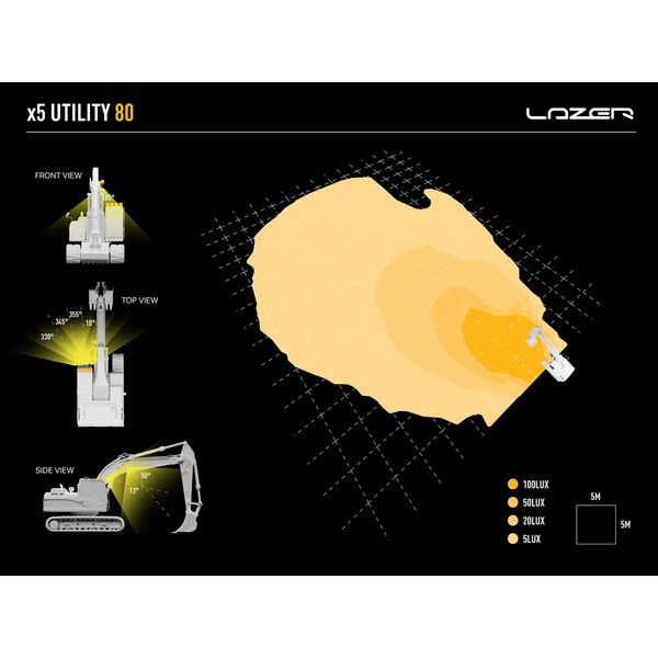 Lazer Utility-80 on tehokas työvalo, joka on suunniteltu haastaviin olosuhteisiin osaksi työkoneiden sekä raskaan kaluston varustelua. Valaisimen erittäin leveä valokeila valaisee lähialueen tasaisesti, ja tämän vuoksi se soveltuukin erinomaisesti tilanteisiin, joissa halutaan saada valoa esimerkiksi työkoneen ympärille mahdollisimman laajasti. Toisaalta sen leveää valokeilaa voidaan hyödyntää yhtälailla myös vaikkapa matkailuautoissa, jolloin työvalon avulla voidaan valaista auton lähiympäristö parkissa ollessa. Tästä valosta ei tehoa tehoa puutu, sillä sen neljä tehokasta lediä tarjoavat valmistajan mukaan vaikuttavan 8820 lumenin valotehon, joten jo yhden valon avulla saadaan valaistua suurempikin alue tehokkaasti. Useampaa valoa käyttämällä valokeilan leveyttä sekä kantamaa saadaan toki nostettua vielä entisestään! Valaisimeen on valittu ajoneuvokäyttöön optimaalinen 5000 kelvinin neutraali värilämpötila, joka maksimoi terävyyden ja tarkkuuden, eikä rasita silmiä pitkässäkään käyttöjaksossa.