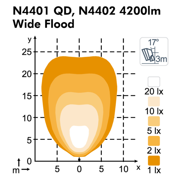 Nordic Scorpius N4402 on CISPR25 Class 5 radiohäiriösuojattu työvalo vaativaan ammattikäyttöön. CISPR25 Class 5 on äärimmäisen tiukka radiohäiriö-vaatimusstandardi, ja sen täyttävät valot eivät häiritse radioita tai radiopuhelimia käytännössä missään tilanteessa. N4402 on 50W tehoinen, erittäin leveäkeilainen työvalo, joka tarjoaa valmistajan mukaan vaikuttavan 4200 lm valotehon. Valotehonsa ansiosta N4402:n valo kantaa erittäin laajasta keilasta huolimatta lähes 25 m (@ 1 lux) ja valaisee näin todella laajan alueen kerrallaan. Parhaimmillaan valo onkin ajoneuvon, työkoneen tai maastoauton lähialueiden valaisussa. Muiden Nordic Lightsin valojen tapaan Scorpius N4402 on suunniteltu pohjoismaisiin olosuhteisiin ja tarkoitettu kaikista kovimpiin käyttötilanteisiin. Valaisin on täysin vesitiivis ja iskunkestävä, sekä suojattu mm. iskuilta (60G) saakka, sekä suolavedeltä ISO 9227 240H-luokituksen mukaisesti. Miellyttävä 5700K värilämpötila.