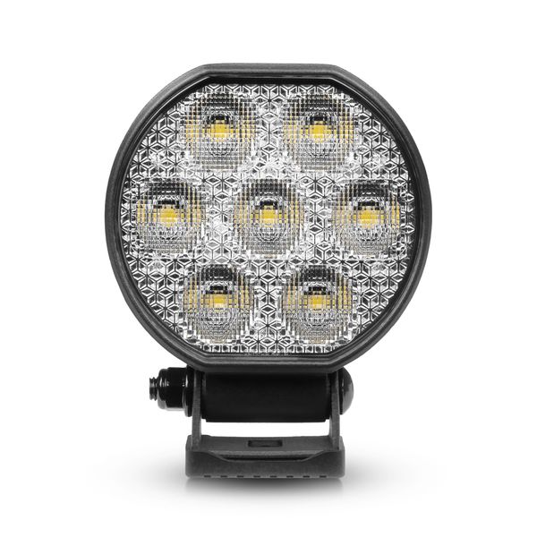 Leveällä valokuviolla varustettu pyöreä työvalo, jolla on CISPR25 Class 3 -luokitus. Iskunkestävä rakenne ja jämäkkä kiinnitysjalusta tuovat toimintavarmuutta kaikkiin olosuhteisiin. Mitattu valoteho 3631 lm, mitattu kantama 67 m @ 1 lux. IP67-luokitus.