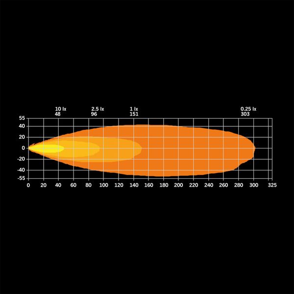Kompaktin kokoluokan työvalo, joka on varustettu mm. leveällä valokuviolla sekä punaisella ja oranssilla parkki-/äärivalolla. Ilmoitettu valoteho 3150 lm, kantama 151 metriä @ 1 lux. IP69K-luokitus.