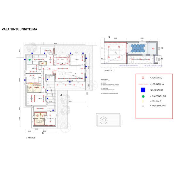 Täysin valmis paritalon valaistussuunnitelma rakentajalle tai remontoijalle. Valostoren asiantuntija suunnittelee sinulle tilakohtaisen ja yksilöllisen valaistuksen toiveiden ja kohteen mukaan. Lopputuloksena saat sähköpostiisi PDF:nä selkeän valaistussuunnitelman valojen sijoittelusta sekä valaisinlistan tarkkoine määrineen, eli valmiin, toimivan ja tyylikkään talon valaistuksen, jonka voi toteuttaa suoraan listaa seuraamalla. Koko prosessi ottaa n. 1-2 viikkoa tilauksesta valmiin suunnitelman toimitukseen.