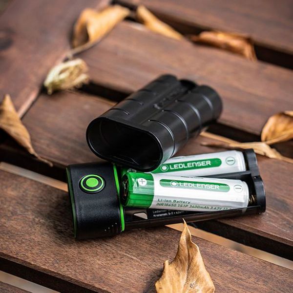 Kompaktin kokoinen varavirtalähde pienten elektroniikkalaitteiden lataukseen. Voidaan myös käyttää useiden Ledlenser-valaisimien akkujen lataus- ja säilytysputkena! Mukana toimitetaan 2 kpl 3400 mAh 18650-akkua.