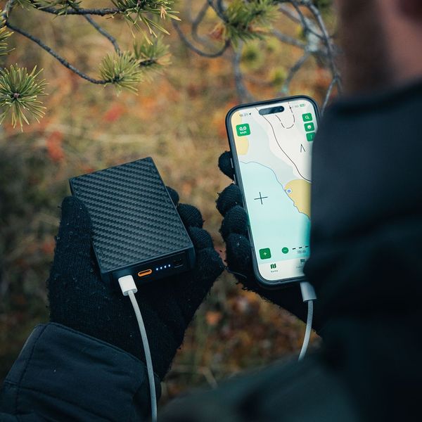 Kompakti ja kevyt, hiilikuituvahvistettu varavirtalähde, jota on helppo kuljettaa mukana! Kapasiteetti 20 000 mAh. Sopii erityisen hyvin esim. pitkille patikointireissuille ja voidaan ottaa mukaan myös lennoille! Virtalähteessä on kaksi USB-C-porttia, joista kumpikin toimii sekä tulo- että ulostuloportteina.