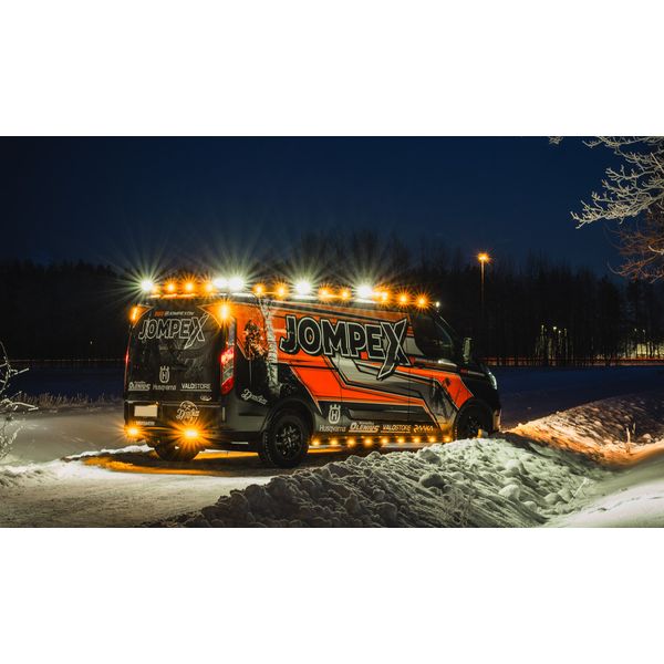 Oransseilla ledeillä varustettu sirorunkoinen ja tyylikäs huomiovalo erityisesti raskaaseen kalustoon ja työkoneisiin. 8 erilaista toimintatilaa, useampi valo voidaan synkronoida! Hyväksytty tieliikenteeseen, soveltuu 12V ja 24V järjestelmiin, 24 kk takuu!